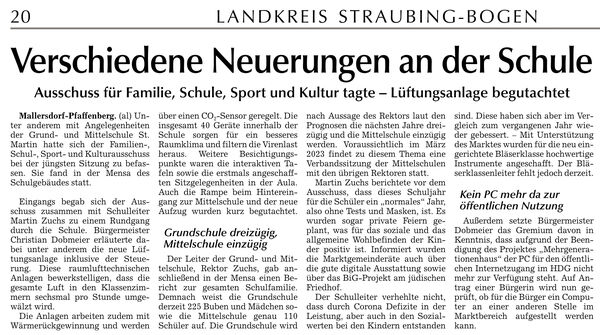 Mallersdorf-Pfaffenberg. (ak) Seit einiger Zeit gibt es in der Aula der St. Martin-Schule einen Wasserspender. Die Schulkinder sind ganz begeistert und nehmen das Angebot gerne an. Auf Knopfdruck gibt es einen kühlen Durstlöscher nach Wahl still oder spritzig. Gefüllt werden die eigenen Pauseflaschen, die Plastikflaschen für jeden Tag von zuhause sind überflüssig geworden, wodurch eine ganze Menge an Müll eingespart wird. Ein weiterer positiver Aspekt ist natürlich die Gesundheit der Schüler, die durch dieses Angebot ermuntert werden, ausreichend zu trinken. Bürgermeister Christian Dobmeier hat den neuen Wasserspender begutachtet und ist der Meinung, hiermit habe man als Aufwandsträger der Schule eine sinnvolle Anschaffung getätigt. Schulleiter Martin Zuchs bestätigte, mit dem Wasserspender sei eine gute Idee verwirklicht worden, er werde von den Buben und Mädchen eifrig und gerne angenommen.